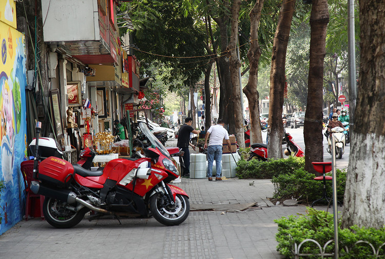 | Trên phố Giảng Võ, những vạch sơn trắng chỉ giới chỗ để xe cho thấy các hộ kinh doanh chấp hành nghiêm chỉnh việc không lấn chiếm vỉa hè. |