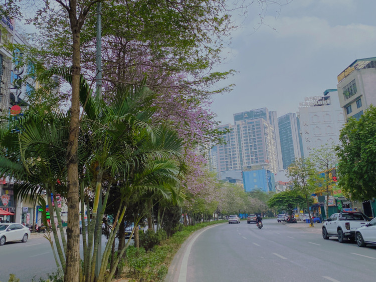 Đường Văn Cao ngập tràn sắc hoa, tô điểm thêm cho vẻ đẹp yên bình của Thủ Đô.