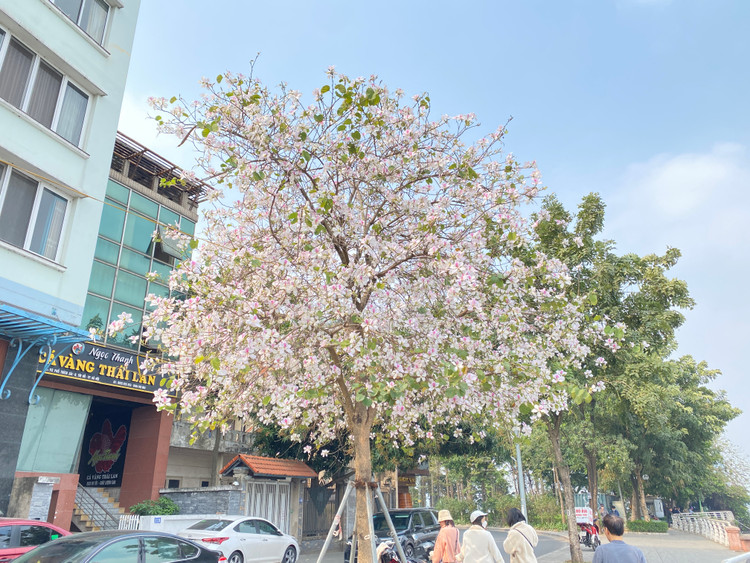Giữa tháng 2, những cây hoa ban trắng và đỏ nở dọc các tuyến phố Hà Nội như đường Nguyễn Hoàng(ảnh), Hoàng Diệu, Trích Sài, Đào Tấn, Nguyễn Phong Sắc đang nở rực rỡ. Năm nay hoa nở sớm hơn mọi năm gần một tháng - Ảnh: T.Huy.