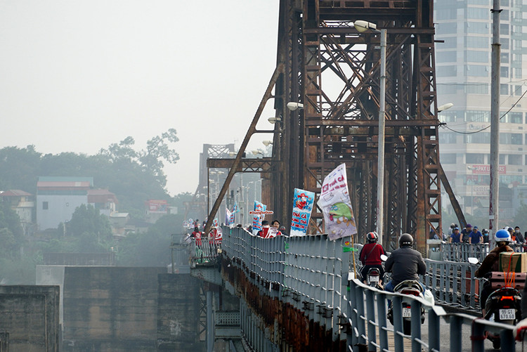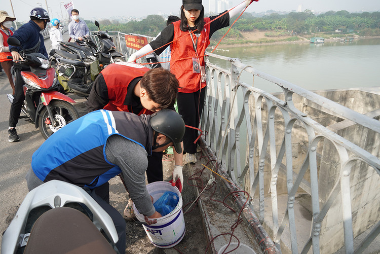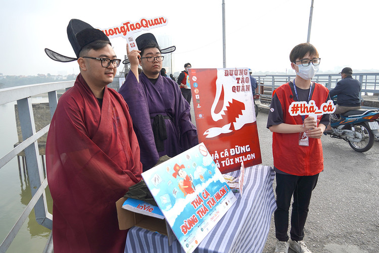 | Tại khu vực hai bên cầu Long Biên có nhóm tình nguyện viên Đường Táo Quân. |