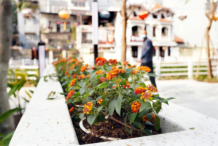 | Cũng như trải thảm cỏ bên cạnh các luống hoa bên đường. |