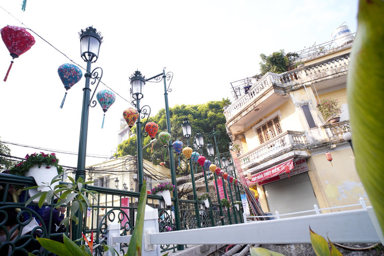 | Hệ thống đèn chiếu sáng được hoàn thiện ở nhiều khu vực trên phố đi bộ. |