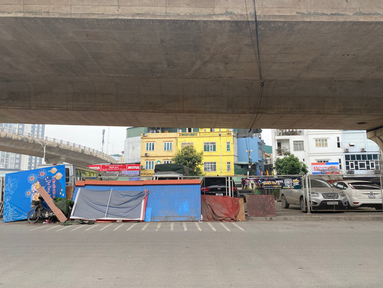 Tận dụng vị trí dưới chân để tập kết VLXD, rác thải, xe cẩu...