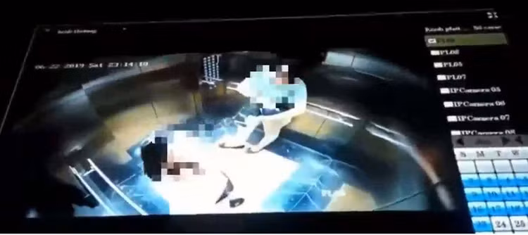 Hai người phụ nữ lấy mũ bảo hiểm che camera để tiểu bậy trong thang máy.