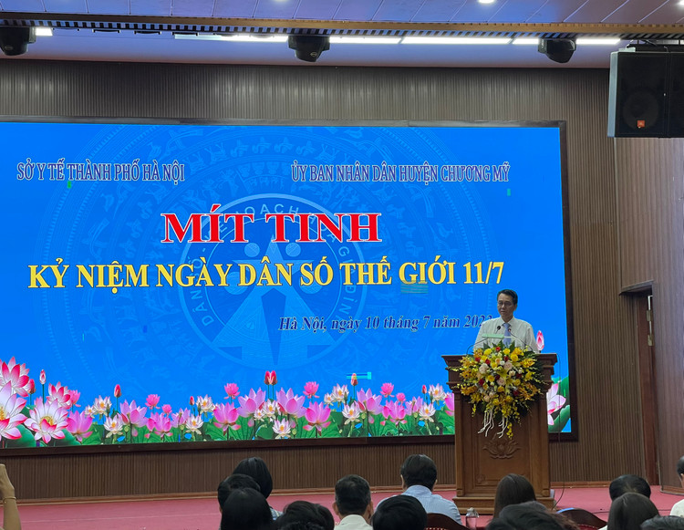 Sáng 10/7, tại UBND huyện Chương Mỹ (Hà Nội), Sở Y tế Hà Nội đã tổ chức Mít tinh kỷ niệm ngày dân số thế giới 11/7/2023.
