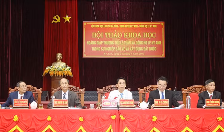 PGS.TS Nguyễn Tất Thắng, Chủ nhiệm Khoa Lịch sử (Đại học Sư phạm Huế); Thạc sĩ Nguyễn Trí Sơn,Chủ tịch Hội Khoa học Lịch sử Hà Tĩnh; ông Lê Trọng Bính, Trưởng ban liên lạc Hội đồng họ Lê Kỳ Anh; Phó Chủ tịch UBND huyện Kỳ Anh Võ Tá Cương; ông Lê Hồng Chương, đại diện con cháu họ Lê xã Kỳ Văn - đồng chủ trì hội thảo.