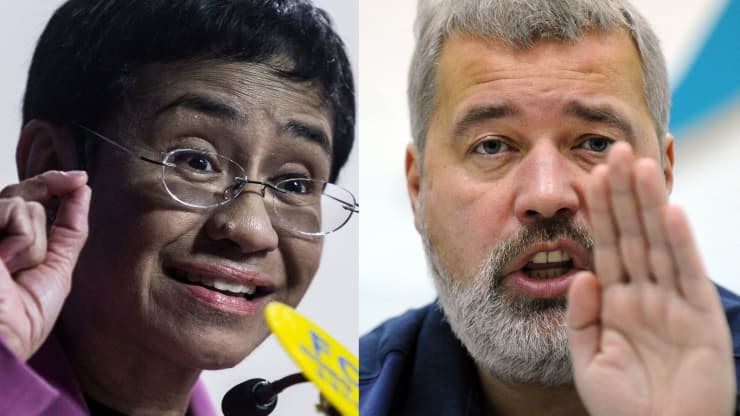 Maria Ressa, nhà sáng lập kiêm Giám đốc điều hành trang tin tức Rappler tại Philippines và Dmitry Muratov, Tổng biên tập tờ báo đối lập Nga Novaya Gazeta.