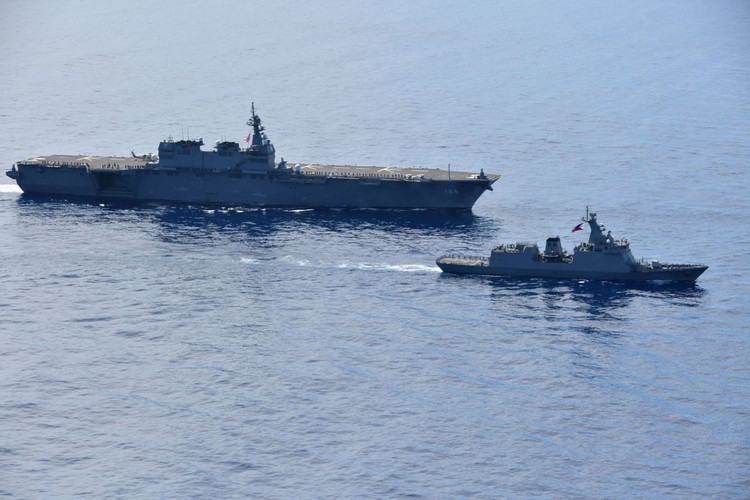 Khu trục hạm BRP Jose Rizal Hải quân Philippines và tàu sân bay trực thăng JS Kaga (DDH-184) của Lực lượng Phòng vệ Hàng hải Nhật Bản