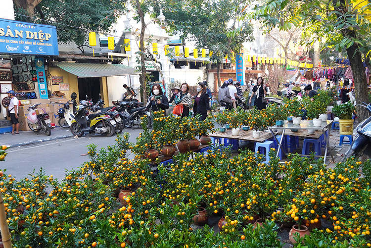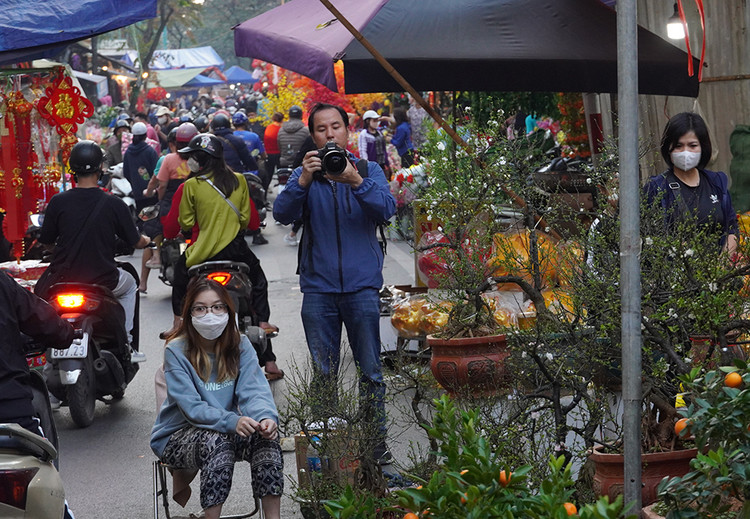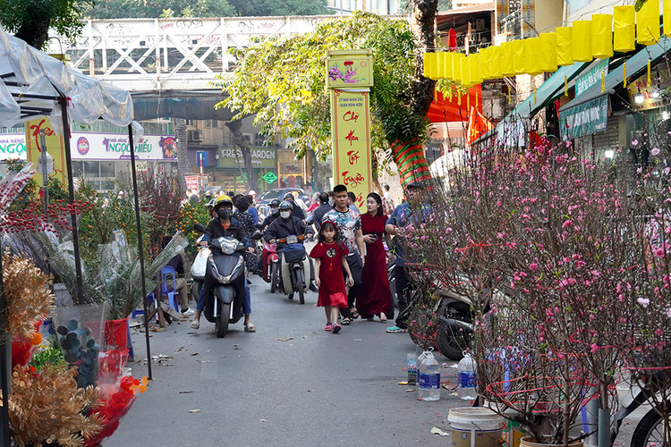 | Dạo chơi chợ hoa Hàng Lược đã trở thành một nét văn hóa Tết đặc sắc đối với người dân Thủ đô. |
