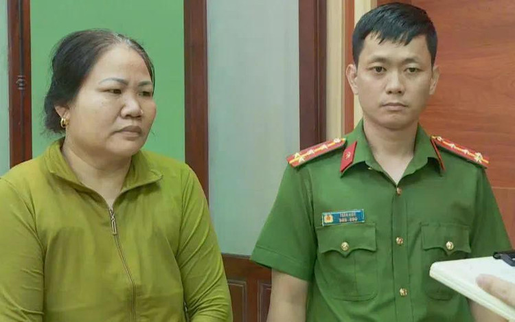 Đối tượng Hồ Thụy Bích Dân bị lực lượng chức năng xử lý sau khi bị phát hiện làm cà phê bột giả. Ảnh: CACC