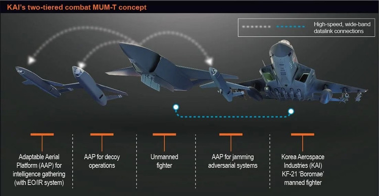 Hàn Quốc đã giới thiệu một máy bay không người lái hỗ trợ cho máy bay chiến đấu tàng hình thế hệ 5 KF-21 Boramae sắp ra mắt, được thiết kế để thực hiện các nhiệm vụ có rủi ro cao như giám sát, gây nhiễu và tấn công chính xác.