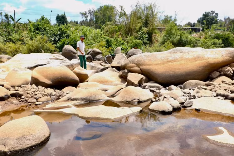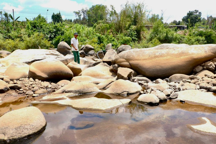 Sông La Ngâu, huyện Tánh Linh, tỉnh Bình Thuận cạn trơ bãi đá cuội