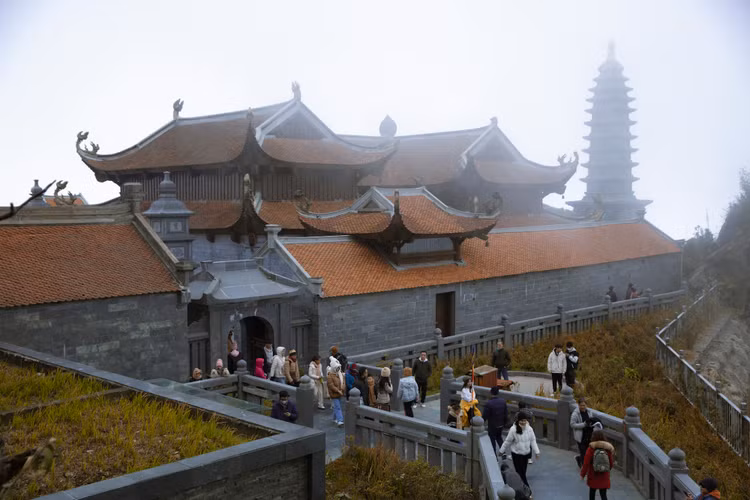 Quần thể tâm linh Fansipan từ độ cao 2.900 m là điểm đến không thể bỏ lỡ trong hành trình du xuân đầu năm ở Fansipan. Trong bảng lảng sương mây, quần thể Kim Sơn Bảo Thắng Tự, đường La Hán, Bảo tháp… mang kiến trúc chùa Việt cổ thế kỷ 15-16 càng trở nên thâm nghiêm, trầm mặc, tựa như đã tạc vào non cao từ cả trăm năm. Tiếng chuông chùa vang vọng, xa xa Đại tượng Phật A Di Đà từ bi ẩn hiện như thực như mơ, thi thoảng, những quầng sáng nhiều màu xuất hiện trên đỉnh tượng Phật tỏa ánh hào quang, Fansipan bởi vậy được tin là chốn linh thiêng hội tụ, là nơi huyệt mạch nước nhà.
