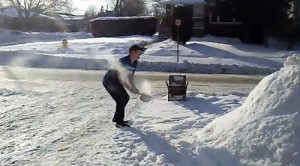 Người đàn ông thí nghiệm hắt nước sôi để kiểm tra hiệu ứng Mpemba.