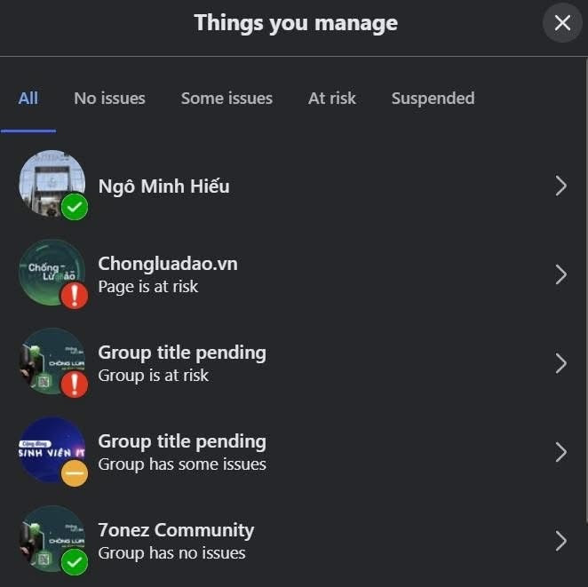 Thông tin thêm về tình trạng này, người dẫn đầu dự án Chống lừa đảo cũng khuyên quản trị viên của các trang này đợi Meta xử lý, cũng không nên thực hiện quy trình kháng cáo vì điều này có thể kéo dài thời gian xử lý. Các trang do Hiếu trực tiếp quản lý cũng gặp phải tình trạng này và hiện đã được khôi phục.