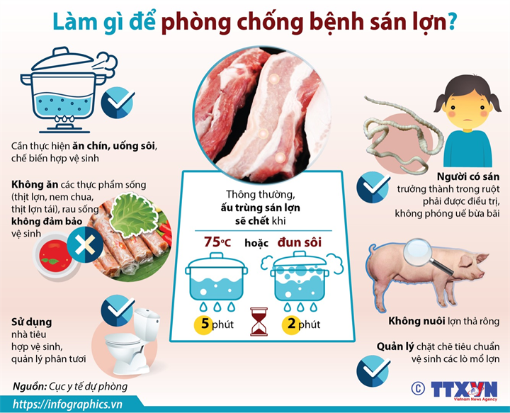 – Tất cả mọi người cần chủ động phòng ngừa nhiễm sán lợn bằng cách vệ sinh môi trường sạch sẽ, quản lý nguồn chất thải thật tốt.