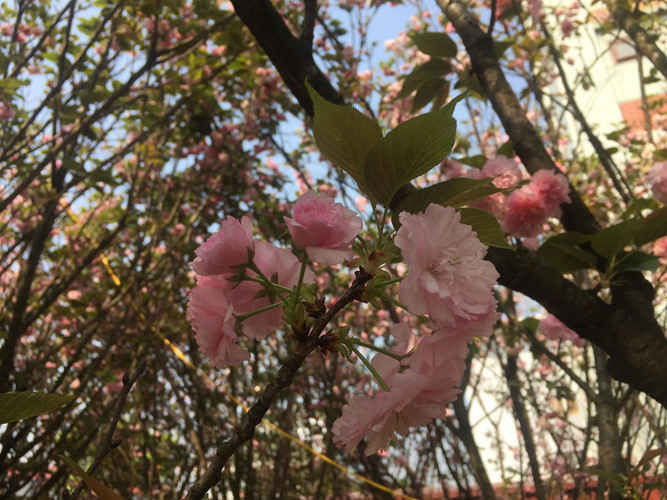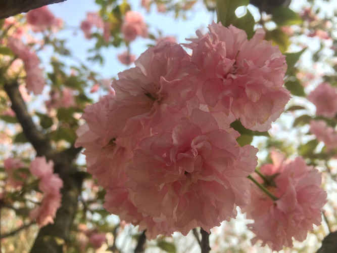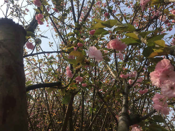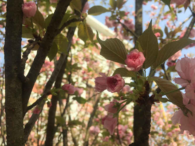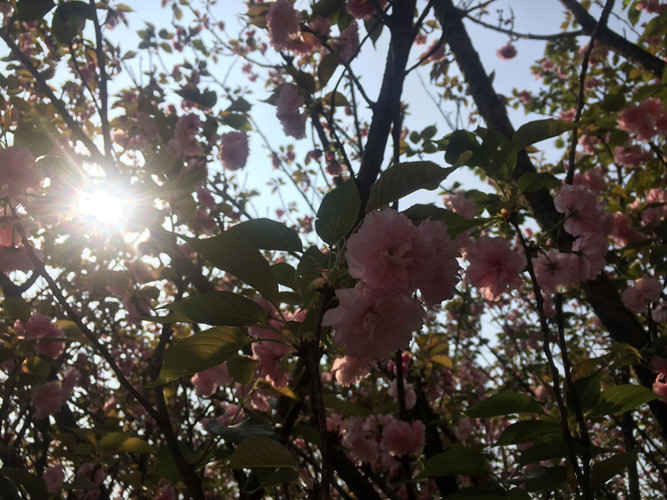 Hoa Anh đào khoe sắc dưới ánh nắng ban mai.