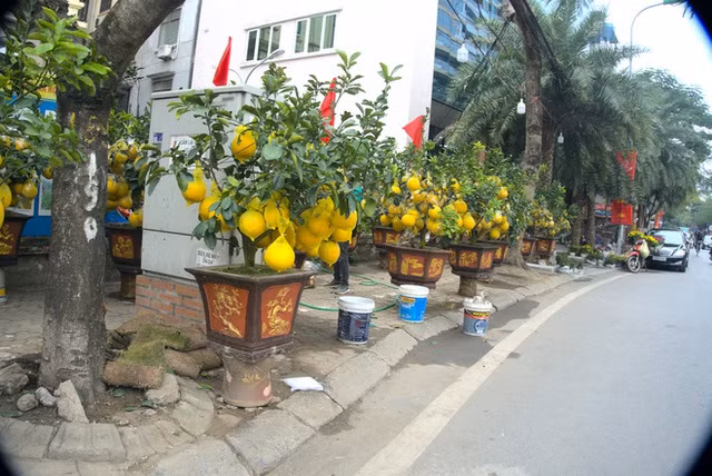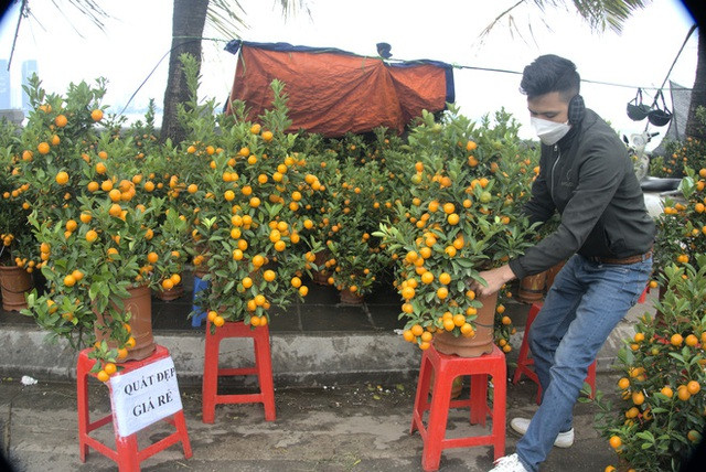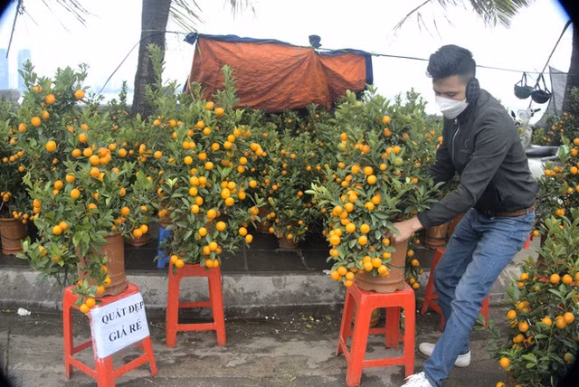 Quất cảnh được chưng với giá rẻ để hút người mua trên đường Lạc Long Quân, Hà Nội