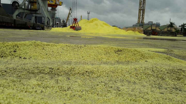 Khoảng 4 vạn tấn lưu huỳnh nằm “đắp chiếu” tại khu vực cảng Hoàng Diệu, TP. Hải Phòng.