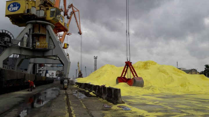 Ông Trần Lưu Phương – phó giám đốc cảng Hoàng Diệu – cho biết số lưu huỳnh này là của Công ty Traco nhập về, được tập kết ở khu vực cầu cảng chờ bốc xếp lên tàu hỏa để xuất sang Trung Quốc.