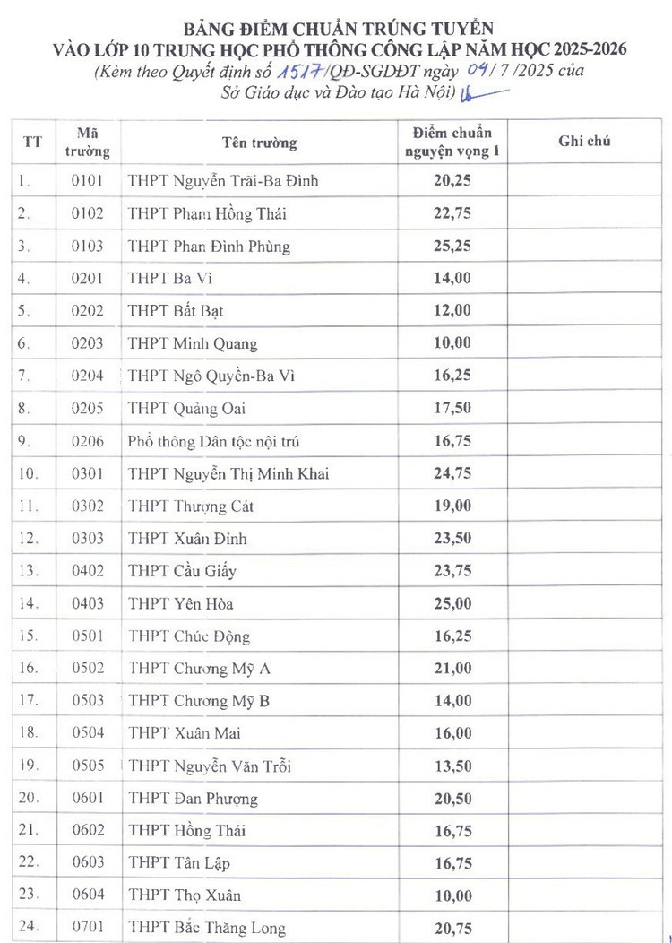 Tối 4/7, Sở GD&ĐT Hà Nội đã công bố điểm bài thi các môn của thí sinh thi vào lớp 10 cùng điểm chuẩn tuyển sinh của từng trường. Cụ thể như sau: