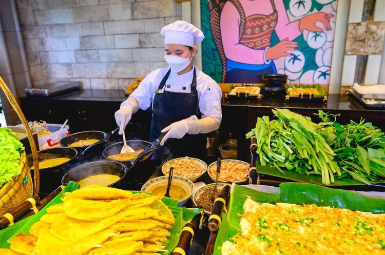 Không chỉ mãn nhãn, đã tai, vui tới bến, du khách còn được nuông chiều vị giác với ẩm thực đa dạng, hấp dẫn tại nhà hàng Vân Sơn trên đỉnh núi.