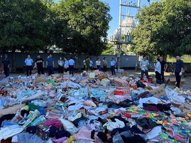 Hơn 24.600 sản phẩm hàng hóa là tang vật vi phạm hành chính được Chi cục QLTT tỉnh Ninh Bình tịch thu và tiêu hủy. Ảnh DMS