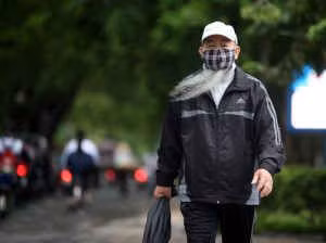 Người già ra đường cần mắc ấm, đeo khẩu trang để tránh hít thở không khí lạnh.