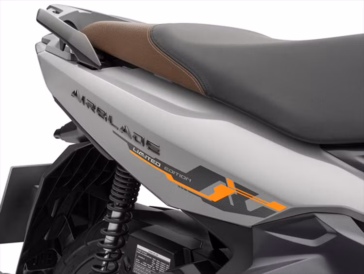 Tem xe màu Cam là những đường cắt ấn tượng quanh logo “Air Blade”, kết hợp với chữ “Limited Edition”, như một lời tuyên ngôn tự hào về sự sở hữu một sản phẩm mới độc đáo và đầy giá trị. Đặc biệt, phiên bản Air Blade 150cc tiếp tục tạo được sự khác biệt hơn với tấm chắn gió phía trước cùng yên xe hai tông màu độc đáo.