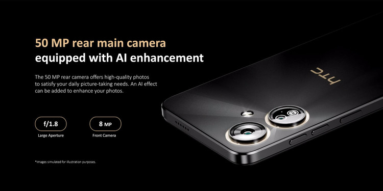 Ở mặt trước, camera selfie 8MP được đặt trong phần khuyết hình giọt nước. Theo công bố trên website, HTC Wildfire E4 Plus sẽ được cài đặt sẵn hệ điều hành Android 14 và đi kèm viên pin dung lượng lớn 5.000mAh, hỗ trợ sạc công suất 10W qua cổng USB Type-C.