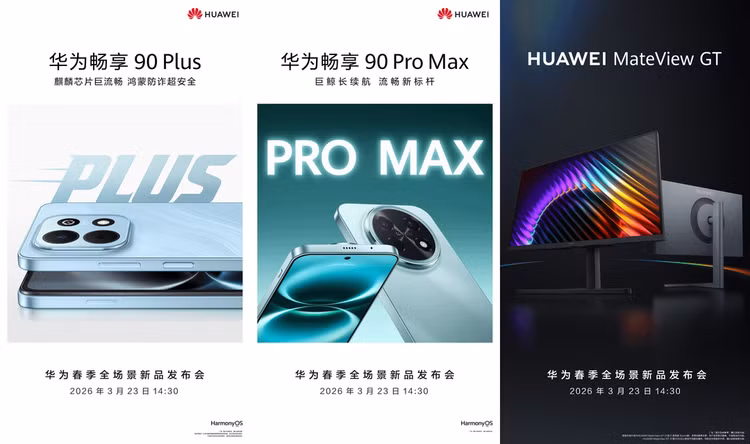 Huawei đã chính thức xác nhận sẽ tổ chức sự kiện ra mắt sản phẩm mùa xuân vào ngày 23/3 tại Trung Quốc. Tại sự kiện này, hãng dự kiến sẽ trình làng các mẫu smartphone mới thuộc dòng Enjoy, bao gồm Huawei Enjoy 90 Pro Max và Huawei Enjoy 90 Plus, cùng một số sản phẩm thuộc hệ sinh thái khác.