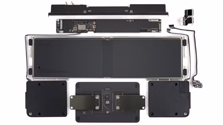 Theo iFixit, “điểm nhấn lớn nhất” nằm ở viên pin. Trong khi các mẫu MacBook cũ thường có pin được dán chặt vào máy, thì pin của Neo lại được đặt trong một khay cố định bằng 18 con ốc vít.