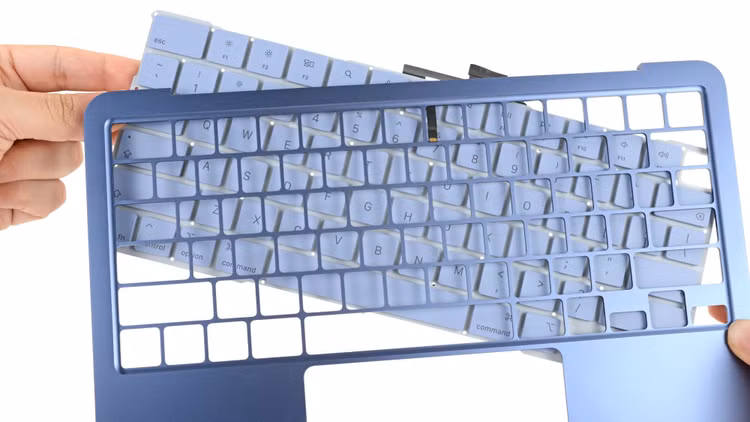 Nhắc đến việc phải mất nhiều thời gian tháo ốc vít, người sửa chữa hẳn rất vui khi thấy bàn phím không được gắn cố định vào vỏ trên hoặc gắn liền với pin. Tuy nhiên, việc thay thế bàn phím ở đây vẫn không hề dễ dàng. Bạn vẫn phải bóc băng dính, làm sạch keo và tháo 41 (đúng vậy, bốn mươi mốt) con ốc vít.
