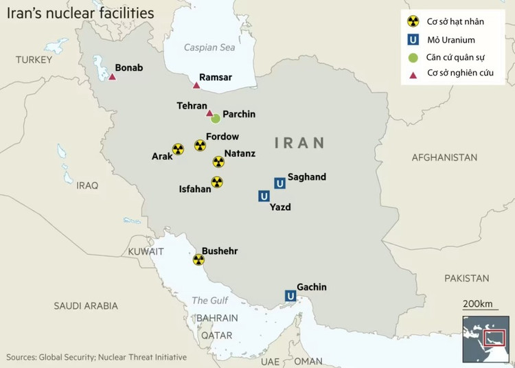 Các căn cứ hạt nhân của Iran bị Israel và Mỹ tấn công trong những ngày qua.