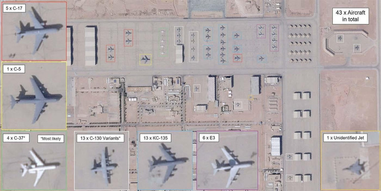 Ảnh vệ tinh các máy bay tại căn cứ không quân Prince Sultan trước thời điểm bị tấn công.