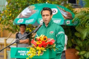 Ông Ali Abbas, Giám đốc Kinh doanh Ngành hàng thức uống dinh dưỡng và sữa công ty Nestlé Việt Nam đang phát biểu tại buổi lễ.