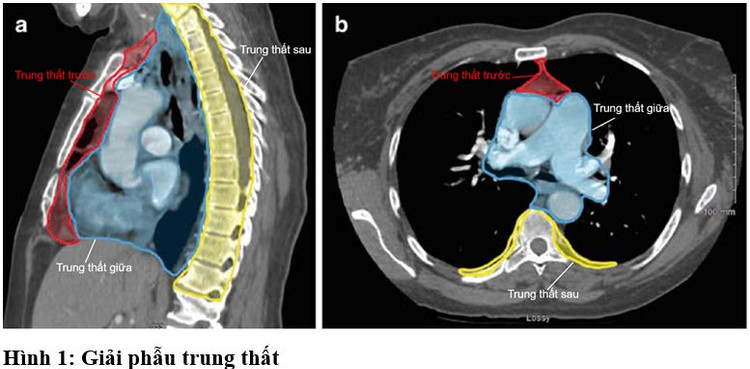 Trung thất là vùng trung tâm của ngực chứa nhiều cơ quan quan trọng như tim, thực quản, khí quản, mạch máu lớn, dây thần kinh, tuyến ức… Nó được bao bọc phía trước là xương ức và các sụn sườn, phía sau là các đốt sống ngực, 2 bên là màng phổi, mặt dưới là cơ hoành, phía trên là vùng nền cổ.