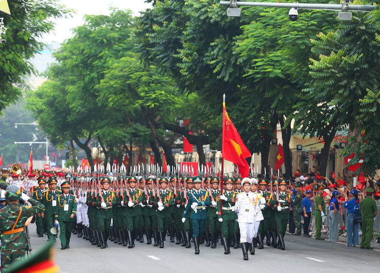 Điểm nhấn ấn tượng nhất là khi các khối lực lượng vũ trang tiến qua lễ đài trong đội hình chỉnh tề, từng bước chân dứt khoát, đồng bộ tạo nên âm hưởng hùng tráng. Hình ảnh những người lính Hải quân hiên ngang trong sắc trắng, Bộ đội Phòng không - Không quân uy nghiêm trong màu xanh, hay khối nữ quân nhân trong bộ quân phục chỉnh tề, rực sáng như những bông hoa thép giữa quảng trường. Đặc biệt khi dàn vũ khí, khí tài của các lực lượng Quân đội và Công an lần lượt tiến qua lễ đài trong sự cổ vũ nồng nhiệt của các đại biểu và người dân đã khắc sâu trong lòng khán giả niềm tin yêu và tự hào về quân đội nhân dân Việt Nam. Mỗi bước đi là một thông điệp về tinh thần đoàn kết, khát vọng cống hiến, xây dựng đất nước ngày càng giàu đẹp, hùng cường.