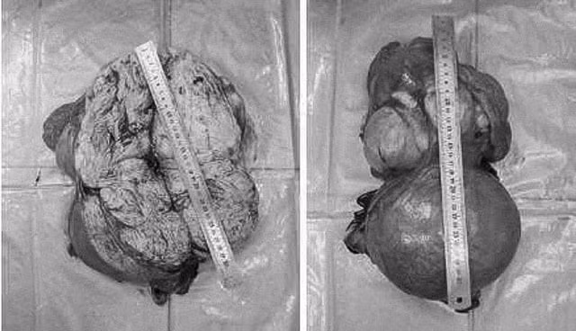 Trước đó, ngày 30/9, Bệnh viện Đa khoa Thủ Đức (TP HCM) cũng vừa phẫu thuật cắt bỏ khối u xơ tử cung nặng 4,5kg cho một nữ bệnh nhân 46 tuổi ở Cà Mau. Bệnh nhân đến nhập viện trong tình trạng bụng to tương đương thai 27-28 tuần. Tiền sử, người phụ nữ này đã phát hiện khối u cách đây 10 năm nhưng không điều trị vì cho rằng khi hết kinh thì u sẽ tự biến mất. Thêm vào đó là tâm lý lo sợ phẫu thuật khiến bệnh nhân trì hoãn việc điều trị. Đến khi bụng to bất thường mới tới bệnh viện điều trị.