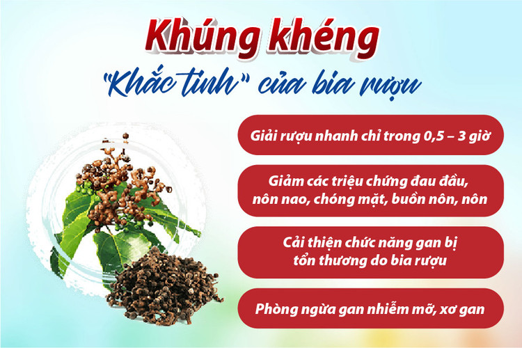 Khúng khéng làm tăng hoạt động của enzyme ADH và ALDH - 2 enzyme gan sản sinh ra để xử lý cồn. Khi chúng ta uống rượu bia, enzyme ADH sẽ chuyển hóa cồn thành acetaldehyde (một chất độc). Tiếp đó, enzyme ALDH chuyển hóa acetaldehyde thành chất ít độc hơn rồi đào thải ra ngoài. Khúng khéng thúc đẩy hoạt động của 2 enzyme này giúp quá trình chuyển hóa và đào thải rượu bia diễn ra nhanh hơn, làm giảm nồng độ cồn trong máu, giải rượu nhanh chỉ trong 0,5 – 3 giờ, cơ thể mau tỉnh táo hơn.