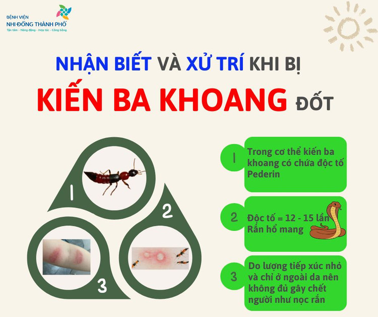 Các bác sĩ bệnh viện Nhi đồng 1, TP HCM cho biết, chúng ta có thể bắt gặp kiến ba khoang ở bất cứ đâu, từ trong nhà ra ngoài trời, từ vườn cây đến khu rừng. Chúng thường trú ẩn dưới lòng đất, trong các khe hở, hoặc đậu trên cành cây. Khi bị đe dọa hoặc va chạm, Kiến ba khoang sẽ tiết ra chất độc Pederin từ các đốt bụng, gây ra những tổn thương da nghiêm trọng.
