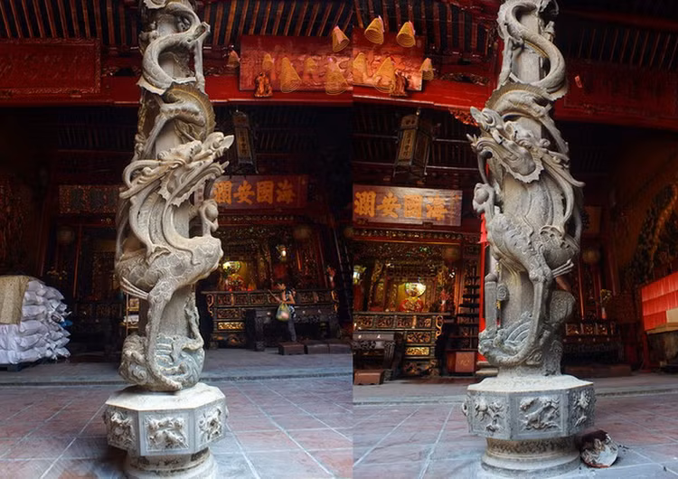 Bộ tứ cột đá nguyên khối ở hội quán Hà Chương
