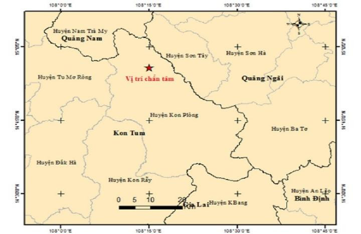 Cụ thể, trận động đất xảy ra vào lúc 11 giờ 04 phút 36 giây, có độ lớn 3.2, độ sâu chấn tiêu 8,1km, tại tọa độ 14.929N – 108.250E.