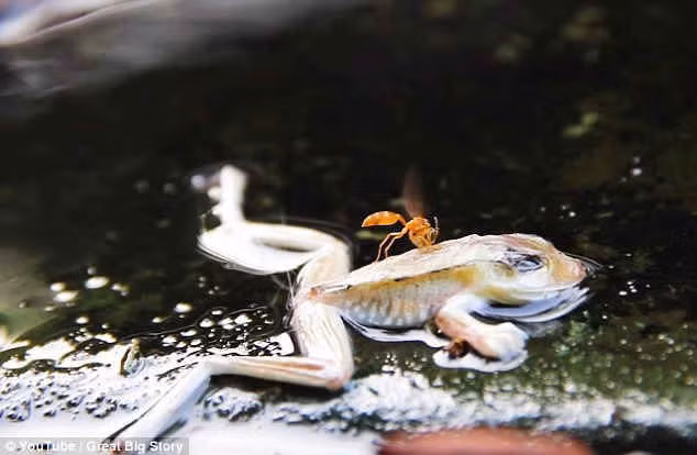 Một chú ếch xấu số khi rơi vào khúc sông.