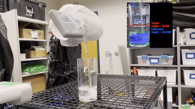 Nước là một thách thức khó khăn đối với robot, vì là vật chất trong suốt. Robot đã học cách đổ nước trước đây, nhưng phải sử dụng các kỹ thuật, như đun nóng nước và sử dụng camera ảnh nhiệt, hoặc đặt cốc thủy tinh trước phông nền ô vuông bàn cờ, tức là những điều kiện không phù hợp với cuộc sống hàng ngày.