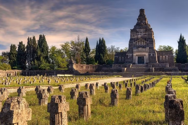 Nhà thờ và nghĩa trang có vị trí đặc biệt. Trong làng có một nhà thờ được xây dựng theo phong cách tân Gothic, cùng với nghĩa trang nằm tách biệt nhưng vẫn nằm trong tổng thể quy hoạch. Đáng chú ý là lăng mộ của gia đình Crespi được xây dựng rất nổi bật, thể hiện vị thế của họ trong cộng đồng. Ảnh: wikimedia.org.