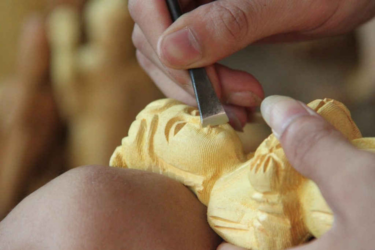 Nhìn những cậu bé trong xưởng của ông, tay cứ thoăn thắt với mũi dùi mũi khía vào thớ mít mà thấy tài. Từ một khúc gỗ nhỏ, người thợ nhí đã biết đến cách gọt những phần thô, tỉa sâu phần lõi, khía những đường nét uyển chuyển để pho tượng như biết cười, biết nói.