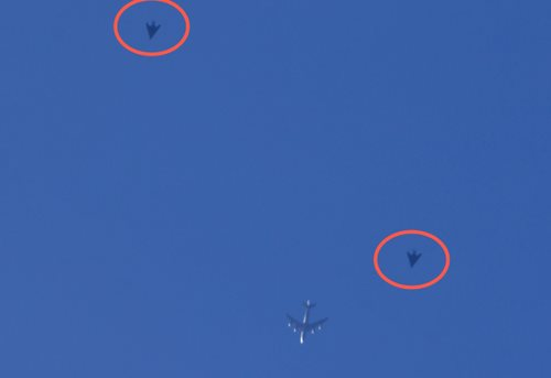 Những chiếc F-117 được cho là đã nghỉ hưu đang bay cùng một chiếc Boeing KC-135 Stratotanker.