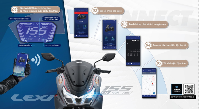 Y-Connect là ứng dụng cho phép phương tiện kết nối với điện thoại của bạn, đã được trang bị trên một số dòng xe tay ga Yamaha tại Việt Nam. Thông qua Y-Connect, người dùng có thể xem thông tin cuộc gọi nhỡ, thông báo tin nhắn,…được hiển thị ngay trên mặt đồng hồ LCD và ngược lại, thông tin về vòng tua động cơ, lịch sử di chuyển,…cũng sẽ được hiển thị ngay trên màn hình điện thoại khi truy cập ứng dụng Y-Connect.