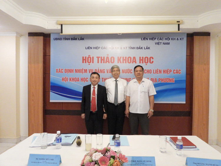 Về tham dự Hội thảo có GT-TSKH Đặng Vũ Minh, Chủ tịch danh dự Liên hiệp các Hội khoa học và kỹ thuật (LHCHKT&KT) Việt Nam; TS Ngô Thị Thanh Quý - Chủ nhiệm Ủy ban Kiểm Tra Liên LHCHKT&KT Việt Nam; TS Vương Hữu Nhi – chủ tịch LHCHKT&KT Đắk Lắk; các đại biểu là lãnh đạo chủ chốt của LHCHKT&KT các tỉnh khu vực Tây Nguyên, tỉnh Phú Yên, Sóc Trăng. Về phía UBND tỉnh Đắk Lắk có ông Hoàng Mạnh Hùng – Phó Giám đốc Sở nội vụ tỉnh Đắk Lắk. GT-TS Đặng Vũ Minh và TS Vương Hữu Nhi đồng chủ trì hội thảo.